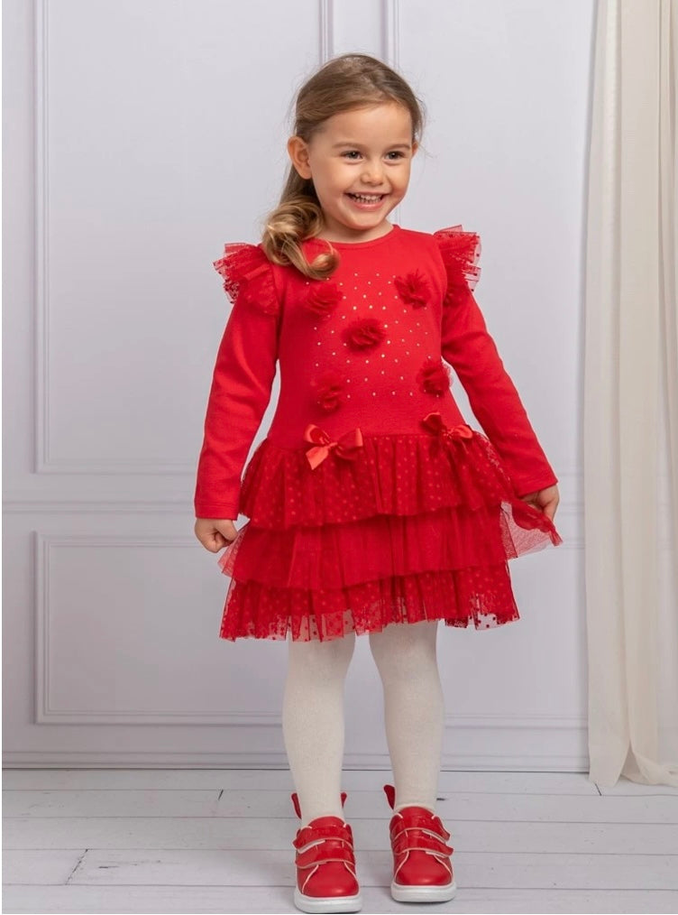 “Tilly” Caramelo Layered Red Long Sleeve Dress
